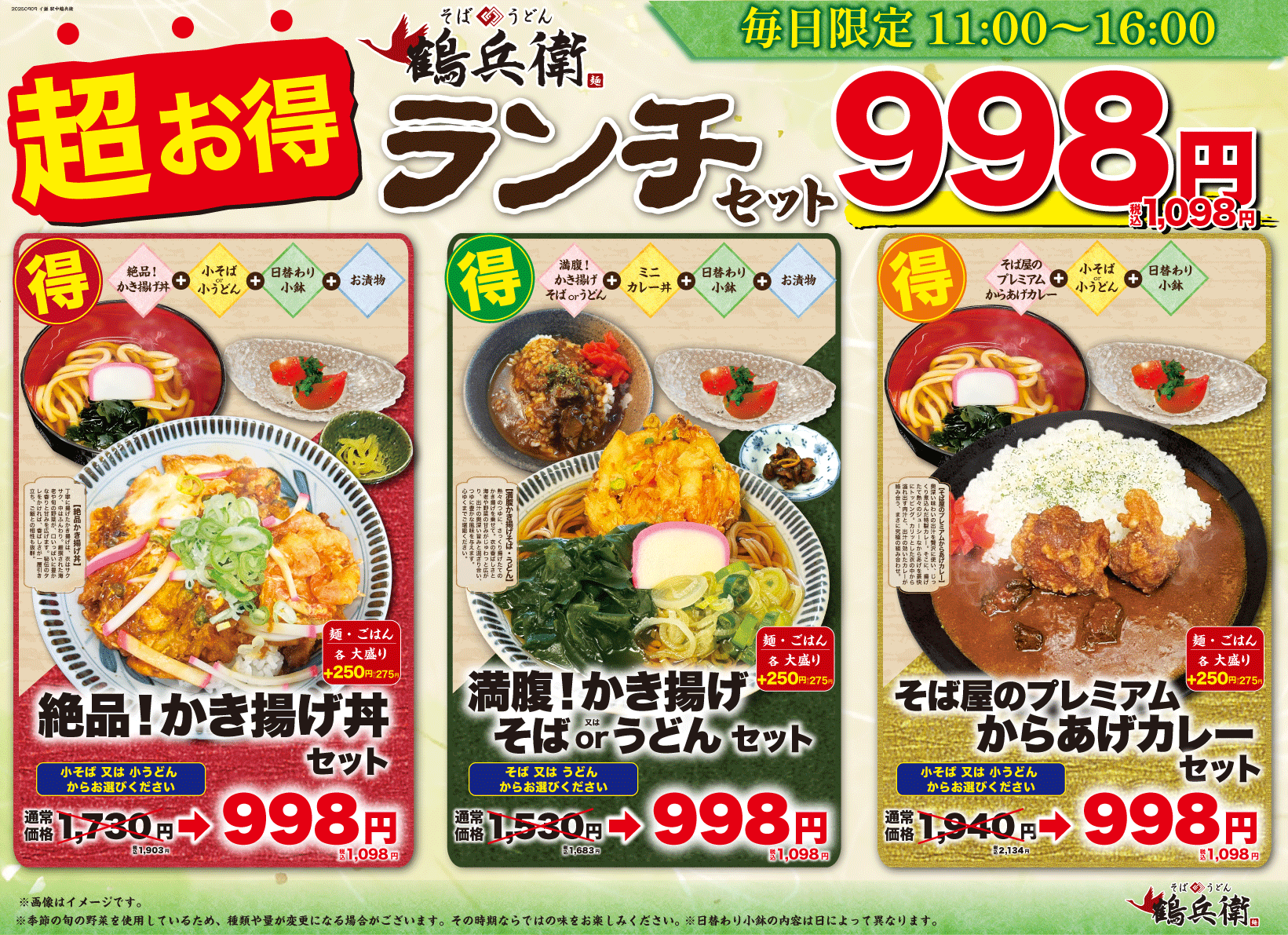 毎日お得な鶴兵衛特製のランチセット!ぜひお試しください。